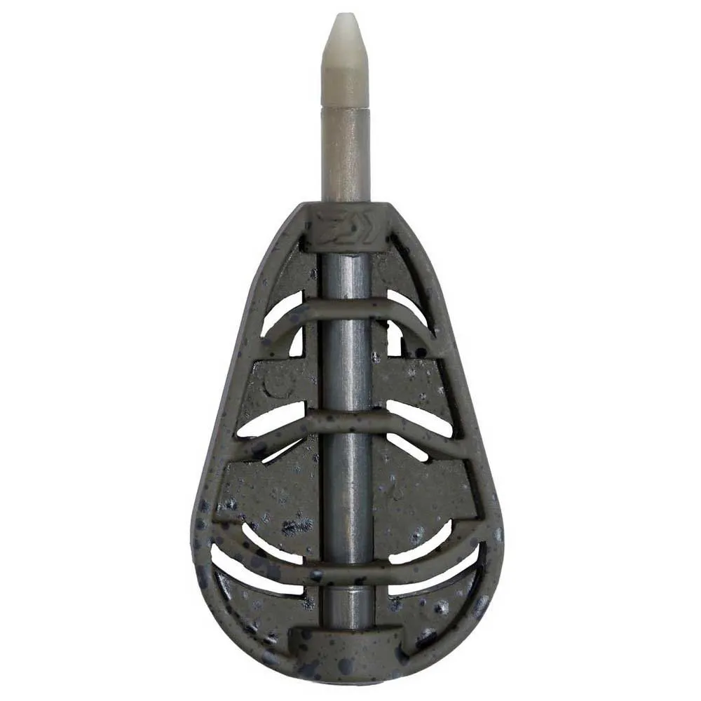 The N´Zon range extends its feeder offer and now includes ´´method feeder´´. Designed in metal, this ´´method´´ has the particularity of having a bait capacity regular whatever its weight. The S model is ideal for winter or difficult fishing and can hold the same volume of bait in 20g as in 30g. The bait structure grows in weight without affecting the volume of bait transported. The M and L models are available in 3 grammages (25, 35 and 50g in M ??and 35, 50 and 65g in L) to cover a maximum of fishing conditions. The method´s central channel can stay in place on the line and the angler can adjust a different weight while fishing without disassembling the line. These products are made of Zinc and have a natural-colored paint that favors the discretion of the assembly.