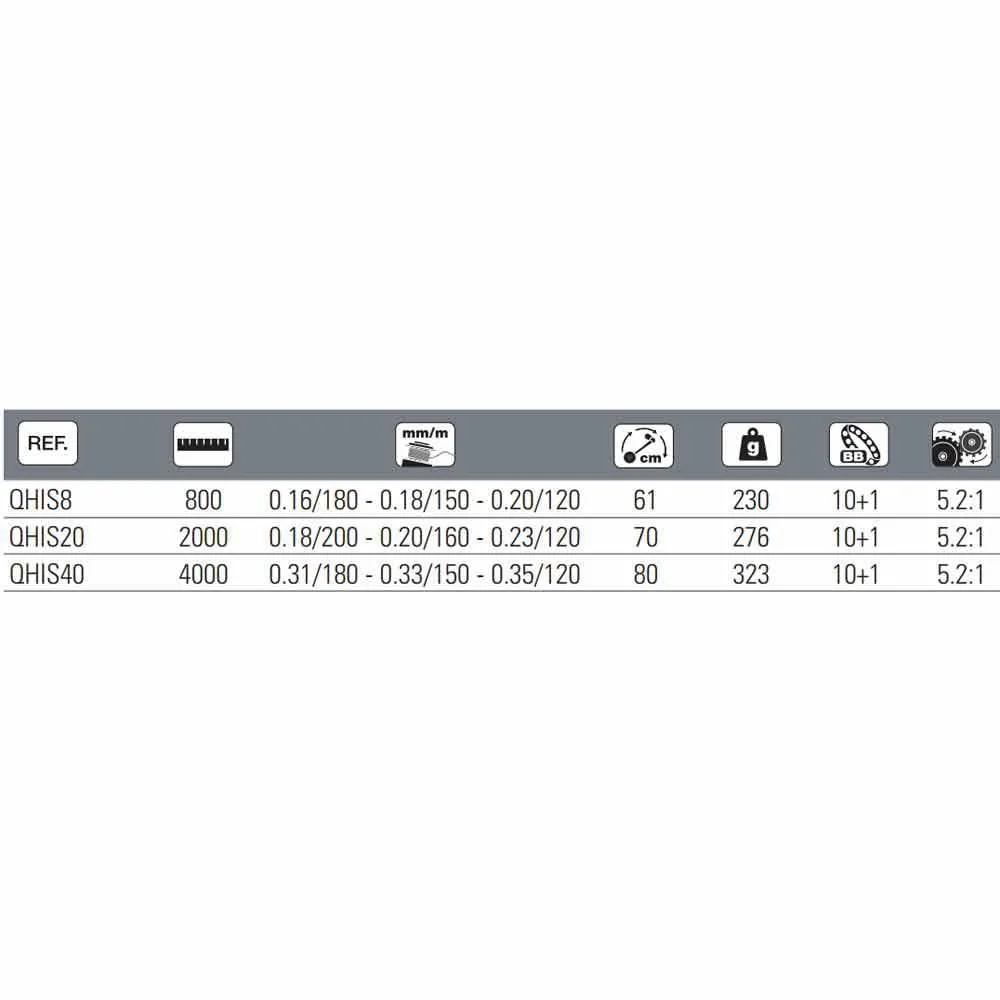– Drag force: 12 kg (800),15 kg (2000), 18 kg (4000).