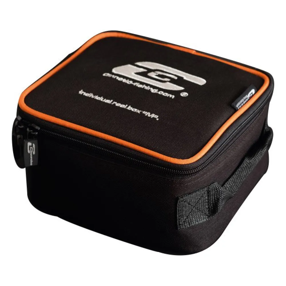 Reel box is a protective case for our reels. Padded and rigid. The square shape and compact size are meant to optimize the space in our bags or rucksacks, avoiding dead room. Depending on the reel model perhaps dismounting the handle will be needed for better fitting.