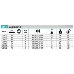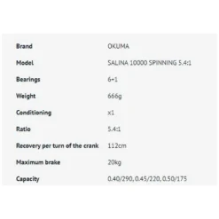 – Monofilament line capacity (diameter in mm.): 0.42/510, 0.48/380, 0.55/290