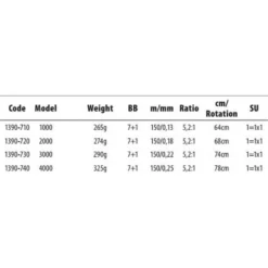 – Monofilament line capacity(diameter in mm ): 0.33/370, 0.35/325, 0.38/270
